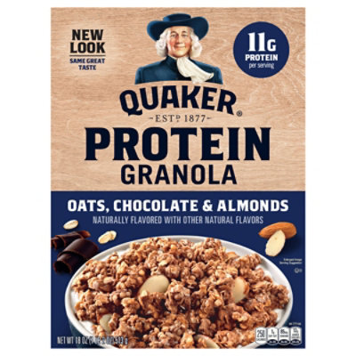7 g total sugars. Quaker Protein Granola has 10g of protein per serving the delicious taste of chocolate almonds a satisfying crunch and whole grain oats.